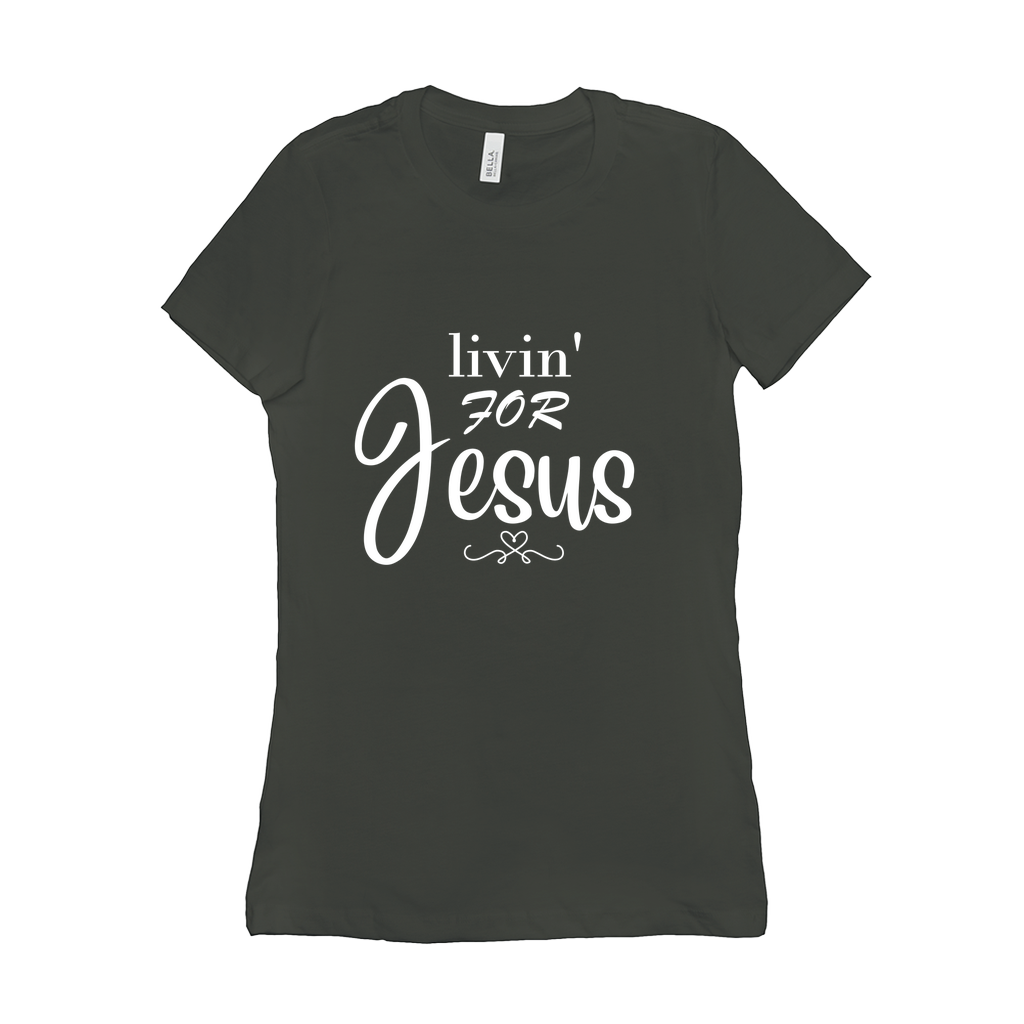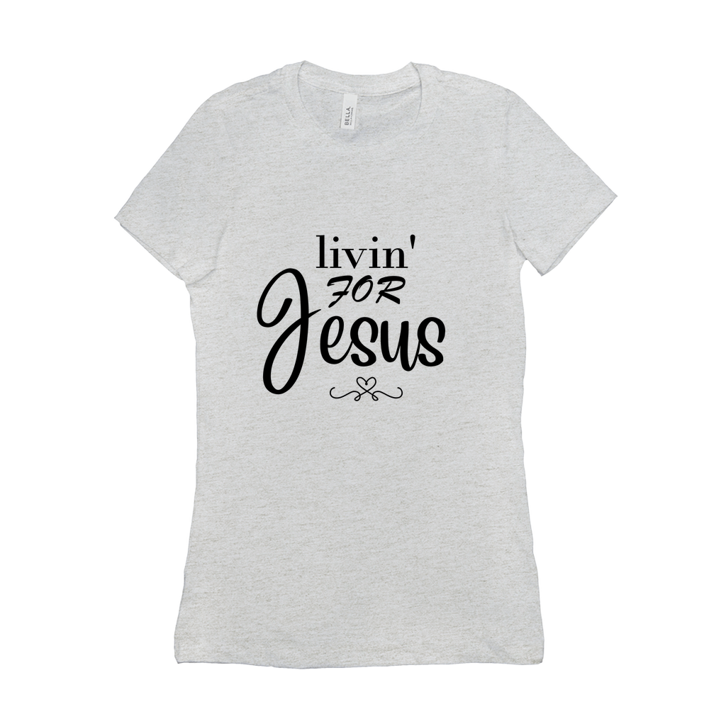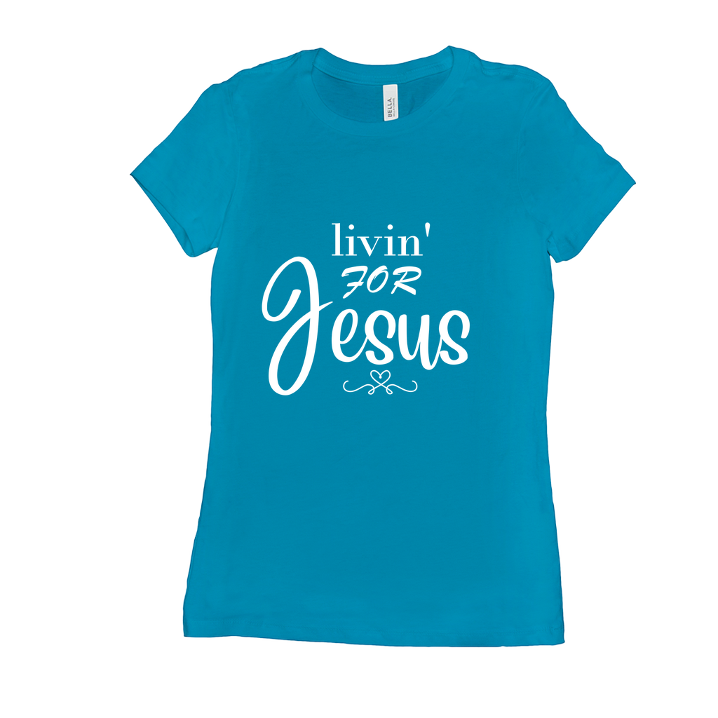 We all should be Livin' for Jesus! This is a great shirt known also as The Favorite Tee, this shirt features a slim feminine fit, longer length and crew neck. Solid Colors are made out of 100% Airlume combed and ring-spun cotton, 32 single 4.2 oz; Ash features 99% combed and ring-spun cotton, 1% poly blend; while Deep Heather consists of 52% Airlume combed and ring-spun cotton, 48% poly blend. Care Instructions: Machine wash and tumble dry on low.