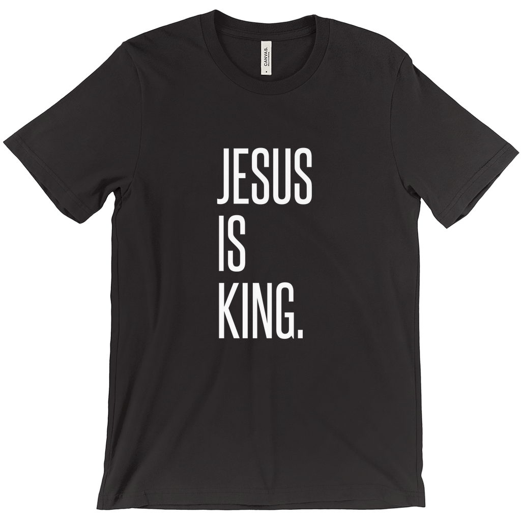 Yes! Jesus is the King period! This crowd favorite features a crew neck, short sleeves and a standard fit. Solid colors are made out of 100% Airlume combed and ring-spun cotton, 32 single 4.2 oz. (Ash - 99% Airlume combed and ring-spun cotton, 1% poly); while heather/CVC colors feature 52% Airlume combed and ring-spun cotton, 48% poly blend. Care Instructions: Machine wash and tumble dry on low.
