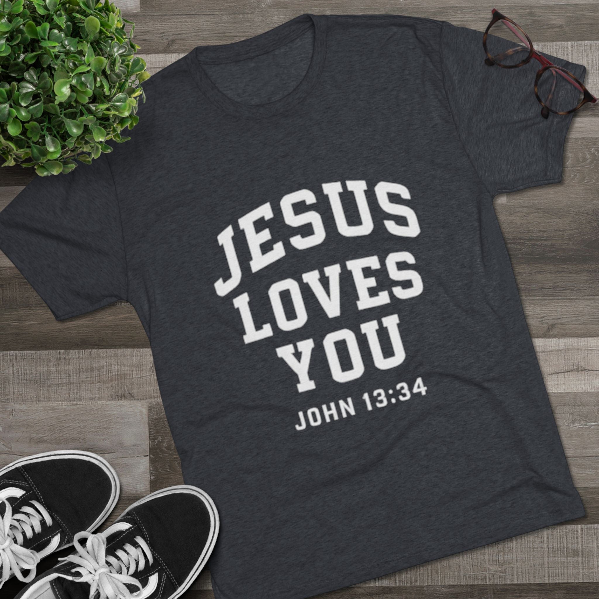 A clean, everyday statement of faith you’ll actually want to wear. Our Jesus Loves You tee pairs a modern streetwear silhouette with a timeless message that starts conversations without the cringe. Printed on soft, heavyweight cotton with a relaxed fit, this shirt features subtle front text and an optional bold back print. Dress it up with a jacket, or keep it casual with jeans and sneakers—either way, it’s a reminder of the Good News wherever you go. Unisex fit, true to size; size up for extra-relaxed. Printed in the USA.