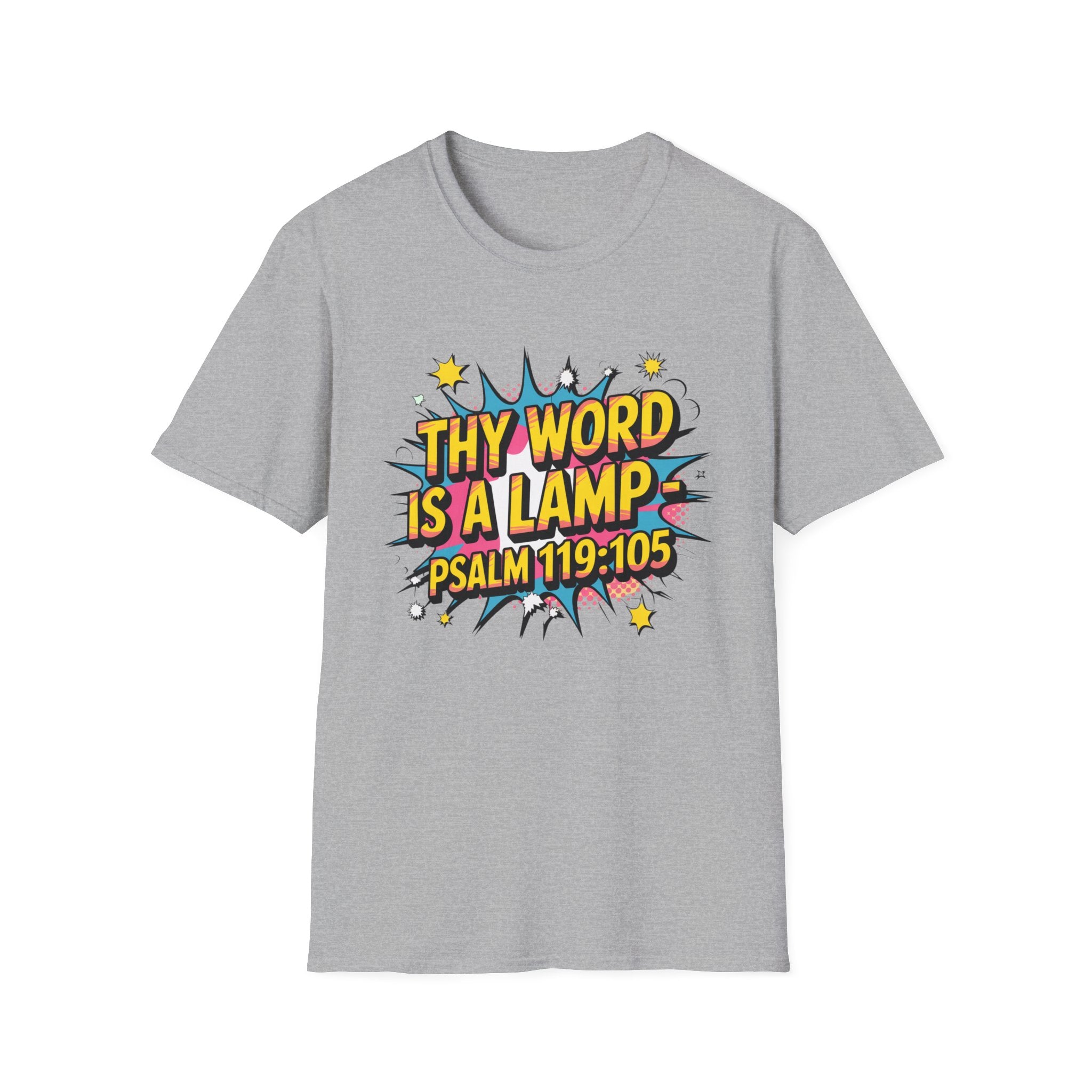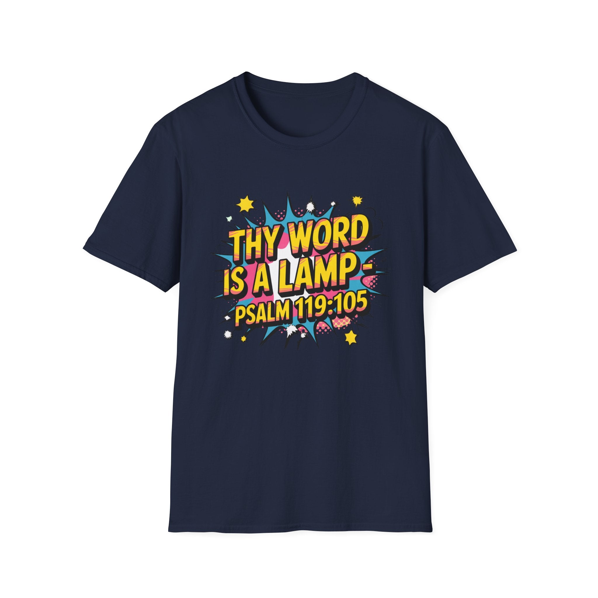 Embrace a blend of comfort and faith with this unisex t-shirt, designed to inspire and uplift. Featuring the phrase 'Thy Word is a Lamp - Psalm 119:105' in vibrant colors, this shirt delivers a positive message while keeping you stylish. Its lightweight fabric ensures you feel great whether you’re out and about or enjoying a relaxed day at home. Perfect for casual outings, church gatherings, or as a thoughtful gift for friends and family. Celebrate special occasions like birthdays, holidays, or spiritual milestones with a piece that resonates with your beliefs and values. Suitable for adults of all ages, this classic fit t-shirt offers versatility for any wardrobe.